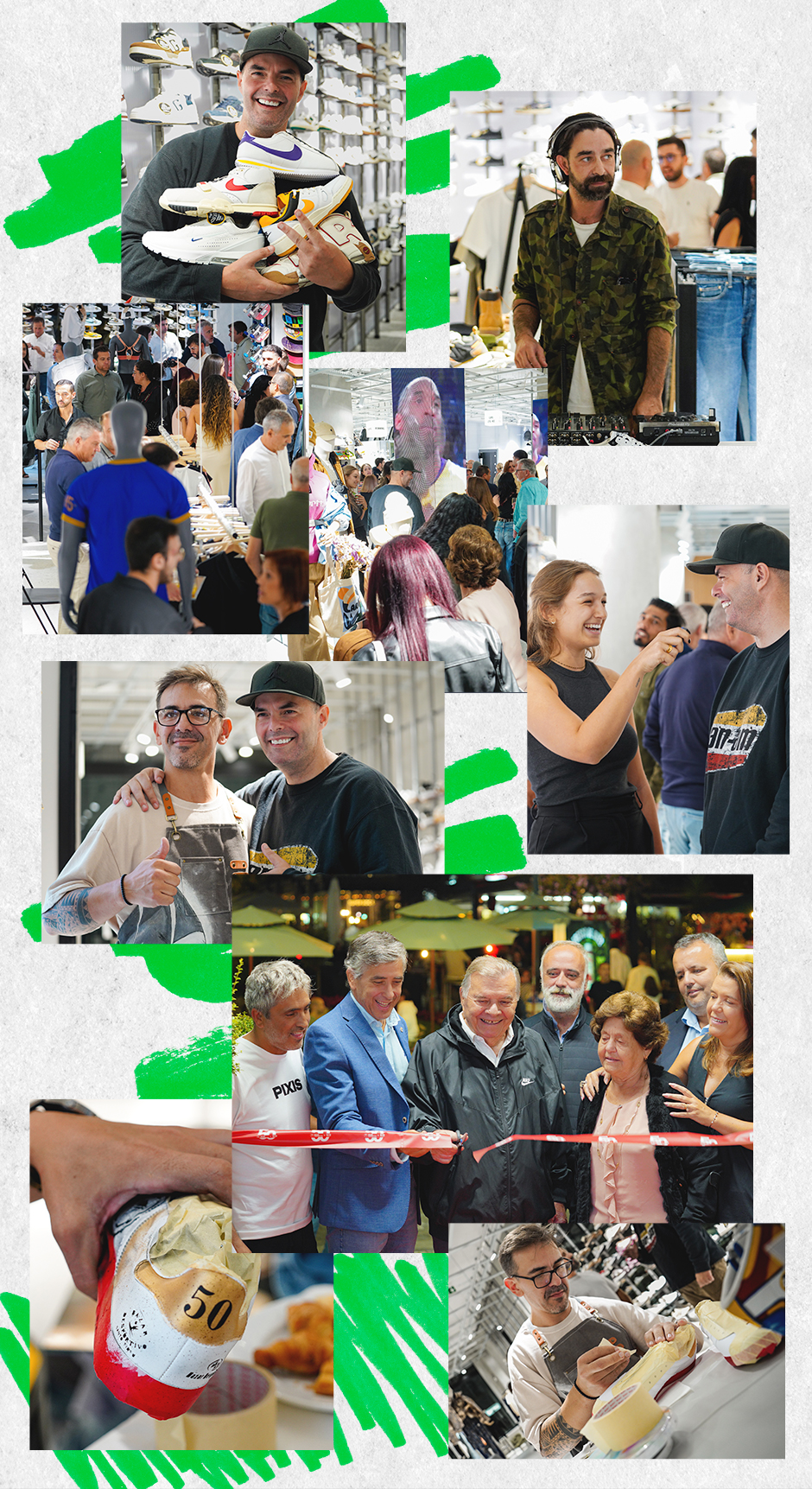 Começando pelos acontecimentos de sexta-feira, dia 13 de setembro, data da inauguração do nosso novo espaço, o evento contou com a presença dos nossos colaboradores, amigos próximos, o YouTuber Nuno Agonia, que trouxe muita boa-disposição, o DJ Sineiro, que nos proporcionou excelente música ambiente, e o artista Luís, que surpreendeu com a personalização de alguns dos nossos modelos de sapatilhas.