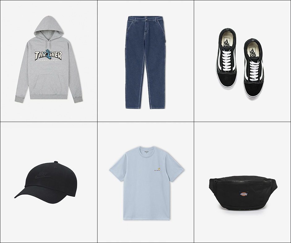 Para um look mais descontraído sugerimos que combines uma camisola de capuz larga com umas calças de malha, umas calças cargo ou então com umas calças de ganga igualmente largas e descontraídas. Para manter a descontração e a praticidade, sugerimos que coloques uma t-shirt básica e que termines o teu look com umas Vans Old Skool, uma bolsa de cintura e um boné que vá de encontro à paleta de cores das restantes peças do look.