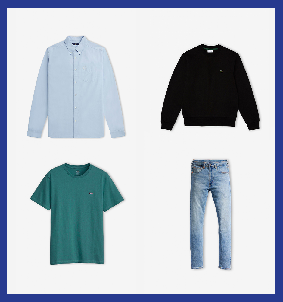 Atualiza o guarda-roupa do teu pai com peças modernas e de qualidade. Podes escolher entre camisolas, hoodies, camisas, calças, calças de ganga, t-shirts e casacos de marcas icónicas como Fred Perry, Lacoste, Levi's, The North Face e Nike.