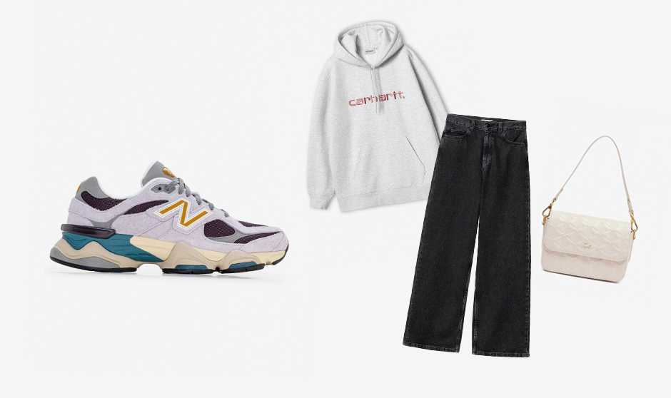 Para um look cheio de personalidade, experimenta as novas New Balance 9060 em lilás, roxo e amarelo combinadas com umas calças pretas e um hoodie cinzento, ambos da Carhartt WIP. Para terminar, acrescenta uma das novas malas da Lacoste. Feito isto, outfit concluído e estilo em dia!