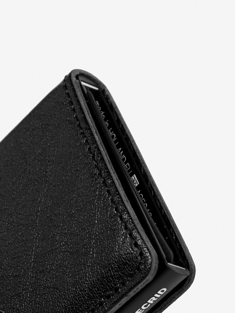 Carteira MVG Secrid em pele vegetal com espaço para 4 cartões com relevo ou 6 lisos, podendo guardar até 4 cartões extra, incluindo talões e faturas. Produto vegan.