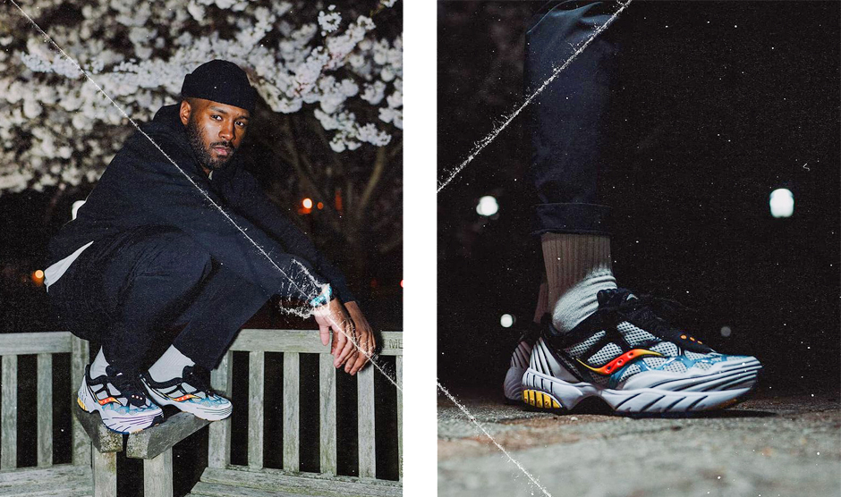 Aqui está uma marca que ainda não tínhamos falado no blog. A Saucony tem vários modelos de sapatilhas, variando do desportivo ao casual. As Grid Web encontram-se algures lá no meio. O lançamento original foi em 2000, mas há dois anos o modelo foi repescado e renovado. Tal como é comum em modelos de sucesso, as Grid Web continuaram a ser libertadas em cores diferentes. Foi assim que surgiu a versão que te trazemos hoje. Publicitadas como o modelo de verão, estas Saucony são realçadas pelas riscas transversais pretas e pelos apontamentos em amarelo. Por cima da rede branca, o início da grelha em azul claro também não passa despercebido.